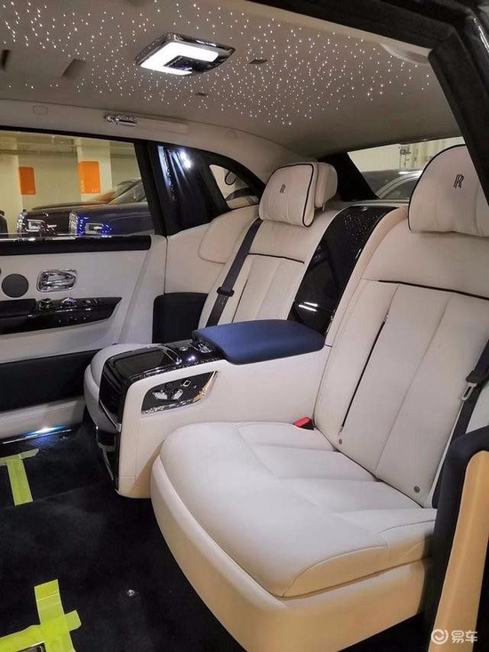 劳斯莱斯全新幻影电动折叠板和后排影院系统被巧妙的隐藏在前排座椅的椅背后,只需轻触按钮,便可以自如收放桌板和影院系统,带来完美的剧院体验。后排中央固定扶手做了重点优化,其中国可容纳带有威士忌酒具的酒柜、香槟酒具和冷藏箱,方便乘客畅快交谈,后排座椅角度可以任意调节,这一设计让客户无需转头便可视线自如交流。举世闻名的星光饰顶抬头可见,整个车厢内饰全部以最精美的高档材料装饰,使车内极具触感。