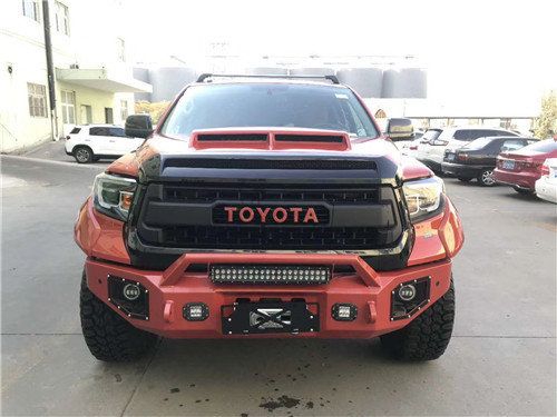 丰田坦途皮卡整车线条设计比较简洁,并没有过多的去为了突出线条结构,保持了丰田家族的一贯风格。宽大硬朗的车身,凸显美国车的风范,前脸明显外张的挡泥板以及前突的坚固格栅尽现强悍风格,视觉上极富冲击力。