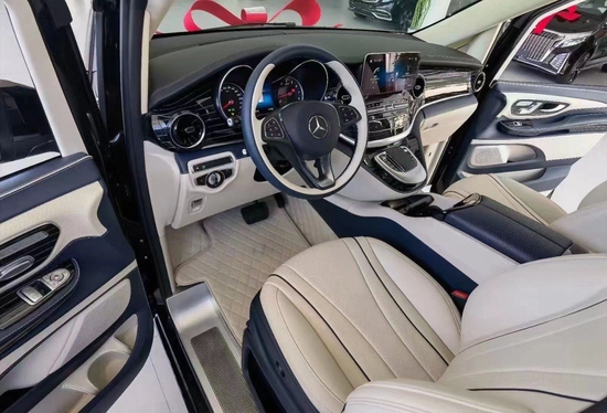 奔驰V260改装4+2隔断行政总裁版,搭载M274系列2.0T涡轮增压汽油发动机,该发动机最大功率155千瓦,最大扭矩为350牛米,在传动系统上,与发动机匹配的则是9G-TRONICPLUS手自一体变速器,驱动形式采用后轮驱动。驾驶室映入眼帘的是多功能方向盘,采用高级挪威森林高光木纹饰件,美观大气。中控部分搭载COMAND人机交互系统与配备的8.4英寸悬浮式立体屏科技感十足,以及COMAND系统不同的人性化操作方式。超大中控彩色显示屏,随时掌控车辆任何信息! 主副驾驶座均可通风、加热,即使长途驾驶也不会感到疲惫!