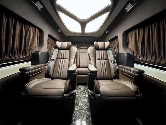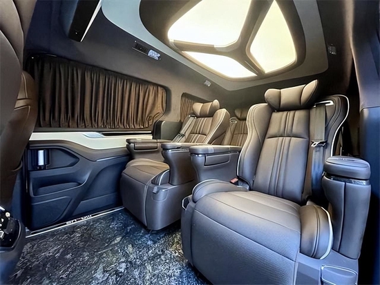 全车采用大量超纤真皮包覆,半隔断互联网电视,加上全车8声道的音箱,带来了很好的视听感受。地板采用大理石纹设计,美观大气,且易打理。中排的采用的是埃尔法 (配置|询价)同款的航空头等舱座椅,功能十分强大,通风,加热,按摩旋转等等应有尽有,这种埃尔法座椅的尺寸比之普通的航空座椅也要宽一点,舒适度更高,坐起来更舒适。