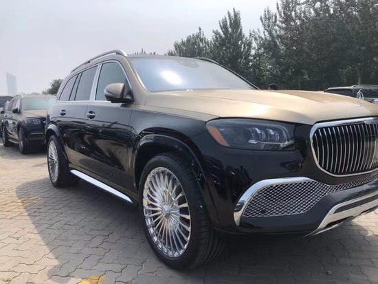 迈巴赫GLS (配置|询价)600车身侧面,新车采用双色车漆喷涂,配备23英寸多幅熏黑轮毂,D柱之上镶嵌迈巴赫专属LOGO,同时车窗周边的镀铬装饰也凸显了尊贵的身份,整体的车身设计简洁而干练。车尾也采用了大量的镀铬装饰,GLS 600和Maybach英文标识所使用的字体样式相比以往车型质感更强。销售负责人:刘总17058068888微信同步