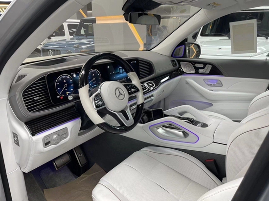 GLS600内饰使用了家族最新的设计语言,带有一体式大屏、氛围灯等配置,做工极其考究。奔驰在豪华氛围的营造上很少让人失望,这一点同样传递到了迈巴赫GLS600上