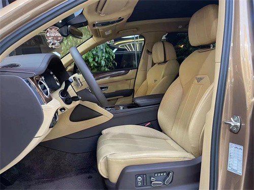 22款宾利添越沙漠铜/驼绒黄特别定制外漆- 纯色漆/金属外漆;宾利徽章座椅刺绣;前座舒适座椅配置 ;镀铬前保险杠格栅;3辐式双色加热真皮镶边方向盘;颜色配置;21英寸五双幅铝合金黑色机械切割轮毂