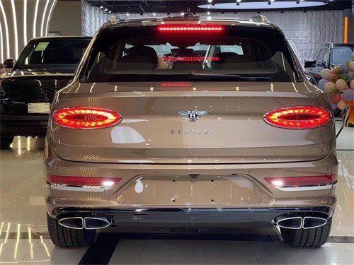 22款宾利添越尾部设计明显,两侧升级后的椭圆尾灯内部LED光源明亮,行驶在车流中极为耀眼,蚌壳式的尾门开启方式以及双侧镀铬的双排气,总之整体效果奢华无限。