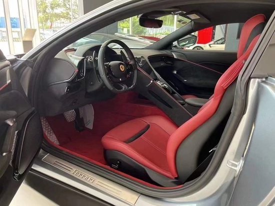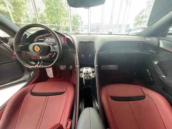 法拉利罗马跑车带有空气通风性的全电动座椅,翼子板上带有法拉利车队徽标,20英寸哑光灰色Corsa轮毂,黄色制动钳,黑色运动排气管,彩色安全带,头枕上的刺绣跃马标志,碳纤维方向盘及LED,后部驻车摄像头,滑雪舱口。