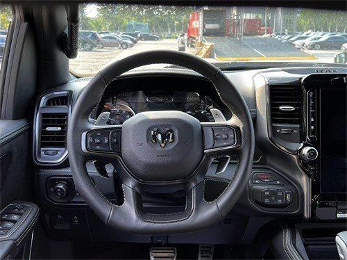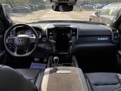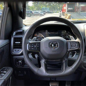 2022款道奇公羊霸王龙在内部设计上还是延续了美式那种比较粗犷的风格,规整的中控台设计看上去比较死板,但丰富的配置会让你不由得为其称赞,中控台的设计简洁硬派,符合公羊的气质,仪表盘底边有花纹,则更加凸显了这款车的文雅性,软性材质的仪表台设计,摸上去手感非常舒服,并无些许生硬之处。