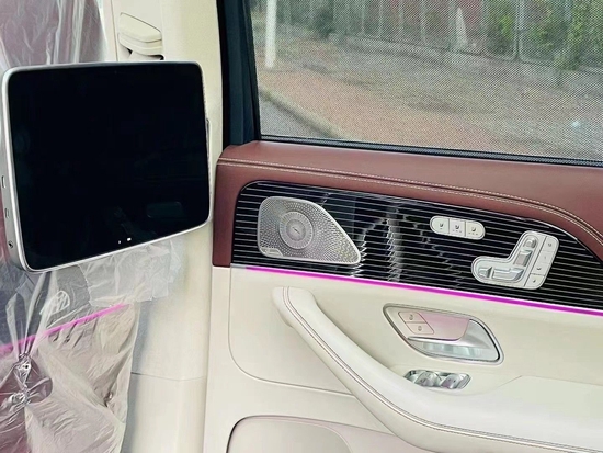 22款迈巴赫GLS600细节方面,我们能够看到新车座椅、车柱、车窗框架、车顶和仪表盘等位置采用Nappa真皮包裹,辅以梅赛德斯-迈巴赫独有的玫瑰金色缝线和滚边,并运用了多个迈巴赫专属标识。车内所有座椅均为多仿形座椅,均可多角度电动调节、并提供热石按摩、加热通风与记忆功能。后排乘客将拥有专属后排娱乐系统、靠枕、独立温区空调、后排触控平板等。