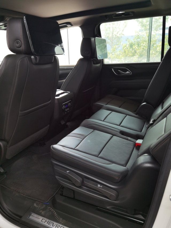 2022款雪佛兰萨博班外观造型设计还是以方正风格为主,车头横纹镀铬进气格栅气场不输凯迪拉克凯雷德,两侧更狭长的LED矩阵大灯光源很犀利,搭配小獠牙日行灯装饰,车头侵略感比较强。车身侧面属于很明显的全尺寸SUV身材,新一代产品比老款车型轴距增加了105mm,C柱后方超大面积侧窗与凯雷德如出一辙,搭配隔音隐私玻璃和平坦的车顶行李架,沉稳的气场很突出。