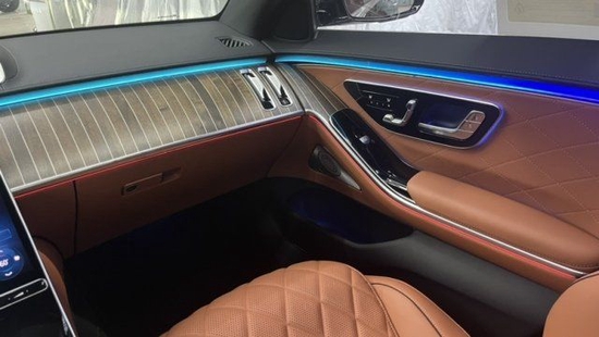 22款奔驰S500的中控台垂瀑式中央触控屏从中控台纵向延伸,凸显出了简约的设计感。整个内饰的豪华感当然是无须质疑,触手可及之处几乎全用上了皮革包裹,配合带263个LED单元的动态氛围灯进一步升华了内饰氛围感。AMG Line的方向盘通过对造型的重新雕塑,变得更加立体。