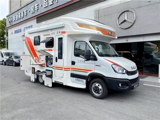 整车尺寸5980*2500*3180mm,符合蓝牌上牌标准,C本也能驾驶。外观方面,白色车身搭配金红色经典拉花,额头处流线型设计,有效减少风阻风噪,提高行车效率。采用铝合金骨架复合车身结构,轻量化出行,整车也更稳固。外置手动遮阳蓬,带有中控的房车专用多功能欧式车门、带踏步联动的电动上车踏步、抽拉式柴油灶、室外餐板、专用外接注水口、外置淋浴、配防水盖的外置插座等,左拓与后拓展舱均配以遮阳棚,可免受阳光照射与雨水侵蚀。后方一处贯通式超大行李舱,方便存放个人行李、户外用品。133-7022-6676