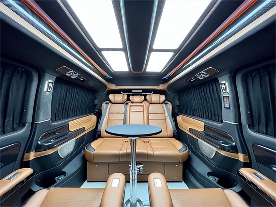 奔驰威霆商务车经典七座格局得以保存,前后双段式全景天窗,向车内出示足够的采光条件,为进一步追求私享静谧,经隔音防噪处置的加固车体构造,装备墨色车窗,内置电动式百褶窗布 ,后舱的整体作风也采用了和驾驶室相溶的基调,环绕车壁、车顶的麂皮绒绝对称得上是大手笔,座椅扶手及侧边车壁也不乏钢琴烤漆纹饰装点。好了本款奔驰威霆高顶定制版七座商务车小峰哥就同大家介绍到这里。阅览世间美好,带您跨越山河,品味人间烟火,给您一个移动的家 -我是小峰哥
