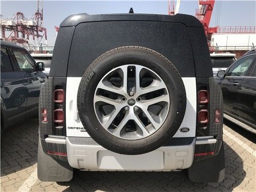 路虎卫士 (配置|询价)车头依旧使用了方方正正的设计元素,方形前灯组内有半圆形光源,前进气格栅的造型设计十分简洁并带有经典的“LAND ROVER”绿色logo,前机盖边缘的“DEFENDER”车型标识也得到了保留。前保险杠下部带有大面积的银色护板,整个前脸的层次感分明,也显得非常厚重。