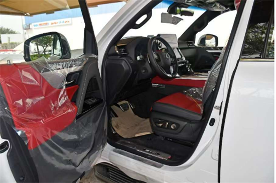 22款雷克萨斯LX600内饰用料得到了优化升级、并首次加入了双触屏设计,位于上方的12.3英寸屏幕负责显示音频、导航等信息,下方的7英寸屏幕主要负责控制空调系统,但也可选择显示越野参数等信息。