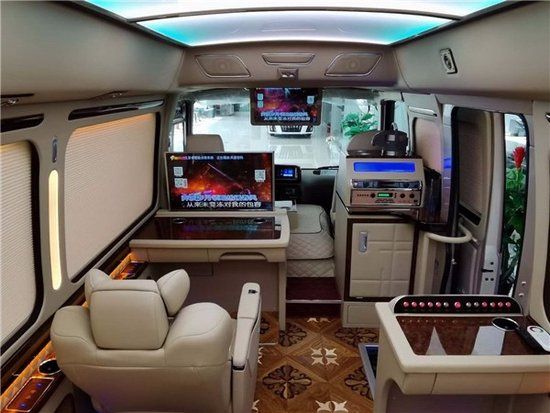 丰田考斯特改装商务车内饰的座椅的布局以及材质或者是整体的设计风格。豪华的真皮座椅,舒适的航空座椅,原装进口的埃尔法 (配置|询价)(配置|询价)座椅,华通丰业丰田考斯特改装商务车在内饰的设计上展示了自己的舒适和贴心。