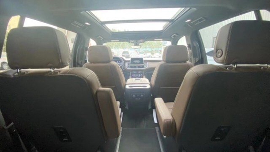22款雪佛兰萨博班前进气格栅采用大面积镀铬进行修饰Suburban 萨博班外型庄重霸气,侧面线条高而挺拔前脸是雪佛兰家族式分离进气格栅,大灯标配氙气大灯,造型凶狠犀利,夜间点亮效果非常漂亮。