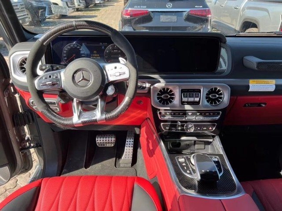 全新22款奔驰G63AMG豪华精致的真皮包覆提供了足够的舒适性和支撑性,通风和加热功能让乘客免受高温和寒冷的煎熬。中控台多处均采用碳纤维材料覆盖,带彩色TFT显示屏的AMG仪表盘、AMG主菜单和单独的挡位显示器以及采用白色照明的AMG门槛。名贵的选材及精湛的内装令人拍案叫绝。
