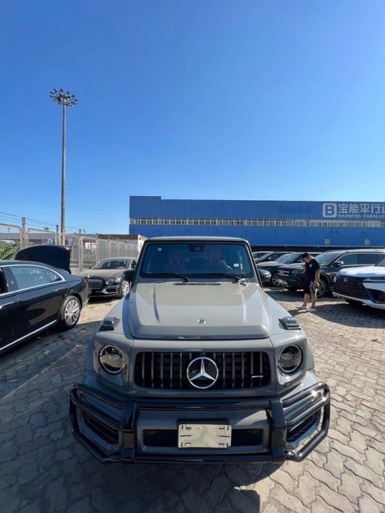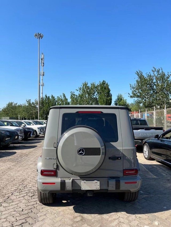 全新22款奔驰AMG G63它硬朗的方盒子造型,没有多余的弧度、没有任何曲线,眼光所及满是平直锋利的线条,就连车顶上的导雨沟槽,也是沿着车顶周围一圈,分外焊接上去的金属槽,车门搭钮更是绝不虚心,硬挺挺地屹立在门缝之外,外凸的轮拱、造型如同 梯形的引擎盖。