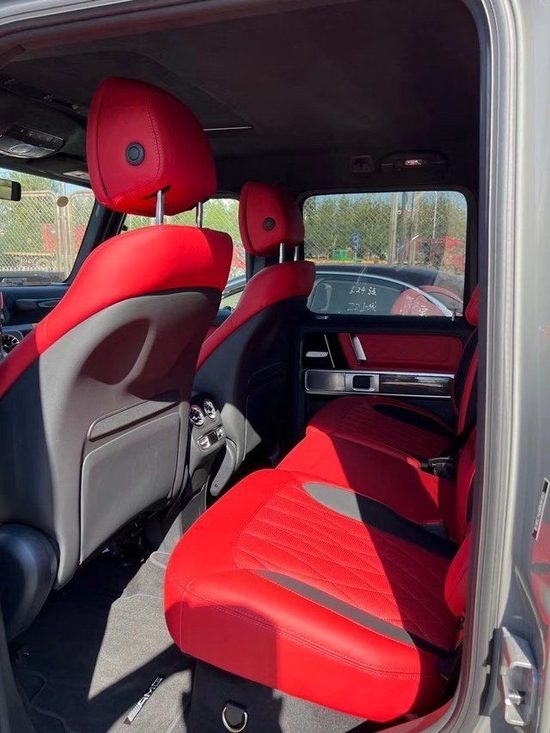 全新22款奔驰G63AMG车内用料以真皮为主,部分碳纤维及铝合金装饰件。如今的G级是纯粹的豪华车了,跟那些纯粹越野车不一样的车内配置很高,像这个座椅除了各种电动调节功能外,还带有腰托腿托以及加热、通风、记忆功能。座椅还是很厚实,都是真皮材质有菱格纹的走线,红黑配色的座椅也是这台Edtion版的特色所在。