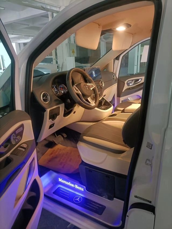 驾驶舱拥有特斯拉式的中央大屏设计,这也是经典Metris设计了,它上面集成了驾驶功能区的所有功能,满满科技感;而坐在副驾上,还可以看个影片啥的,肯定会别有一番风味。进口奔驰7座商务车Metris的驾驶舱除了部分中控变得更精美外,还在驾驶座椅中间加装了一个小型冰箱,扶手前后都有两个隐形杯托。