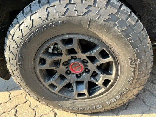 全新22款平行进口丰田超霸大灯与格栅紧紧相连,大灯看上去非常凶狠霸气,不愧是车如其名“超霸”。20英寸的大轮毂,配备的是锻造式的轮毂,非常的坚实,碰到石头几乎是没有问题的,匹配的是越野式的轮胎,可以适应各种路况,可以提供很好的摩擦力。