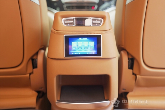 豪华一体式冰箱扶手,集储物盒、后舱控制面板等功能为一体。