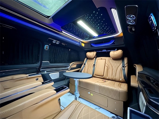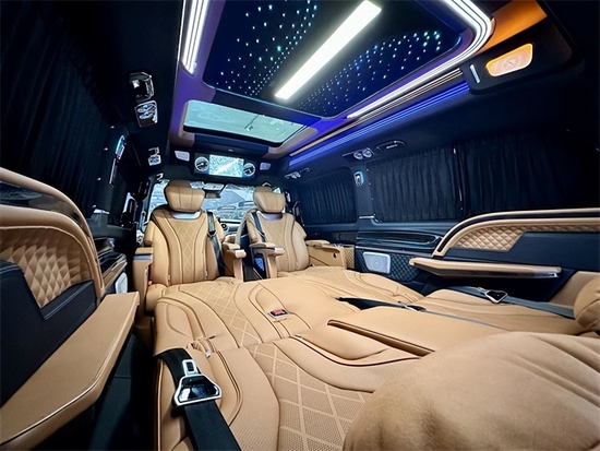 奔驰V260L改装高顶无隔断七座的操控表现也很好,三辐方向盘的造型和手感完全不会让您认为自己驾驶的是一款商务MPV,奔驰V260L方向盘的转向力度设定的较为均匀且很轻盈,长时间驾驶也不会让我觉得有疲劳感。不过,说实在的我认为在一款MPV上聊操控实在有些多余,与其感受操控倒不如让我感受一下后排。