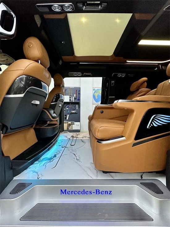 奔驰V级豪华多功能车,独有七座超大空间搭配豪华真皮座椅,一直是豪华商务车必选的车型之一,尤其是内饰经过定制升级的奔驰V260迈巴赫版,美轮美奂,功能丰富实用,实在是出行代步必备的良品!好了本款奔驰V260L定制版高顶七座商务车小峰哥就同大家介绍到这里。阅览世间美好,带您跨越山河,品味人间烟火,给您一个移动的家 -我是小峰哥