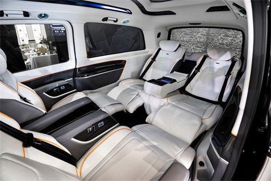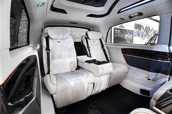 艾奈斯进口奔驰V250商务车的车内的门板全部采用了纯手工的深度包覆,触摸起来更加舒适柔软!二排座椅同罗伦仕天系列的车型完全一样;采用了人体工程学设计的座椅,完全贴合人体的脊柱曲线,即便是长途乘坐也是非常的舒适。座椅一贯选用了物理按键设计,调节起来更加方便,同时也避免了触摸屏会出现的程序紊乱等问题。