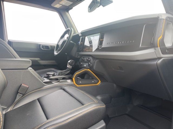 全新22款福特烈马Bronco车内采用硬朗的设计风格,中控台设计主次分明且有层次感,用料也厚实,多功能方向盘造型运动,中控屏幕采用内嵌式的设计增添了车内的时尚感,按键布局合理,档把设计精致,座椅宽大厚实,空间宽敞,实用性强。