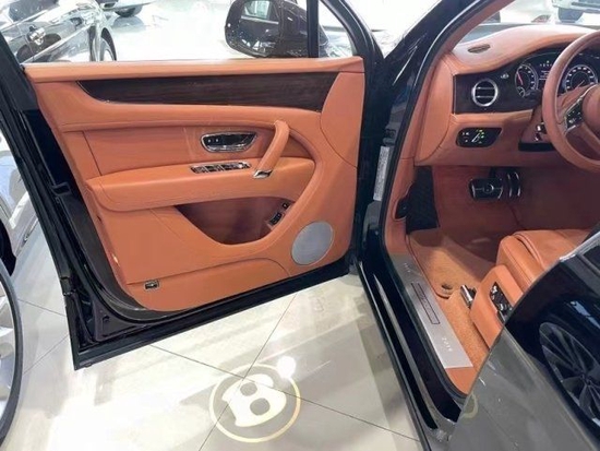 宾利添越 (配置|询价)油混3.0 黑/棕 9994# 21轮,百年纪念规格包、前座椅舒适包、保险杠与车身同色-标准车漆范围、矩阵格栅和保险杠下部镀铬、宾利前后增厚脚垫、脚感电尾、钢琴漆内饰、氛围灯