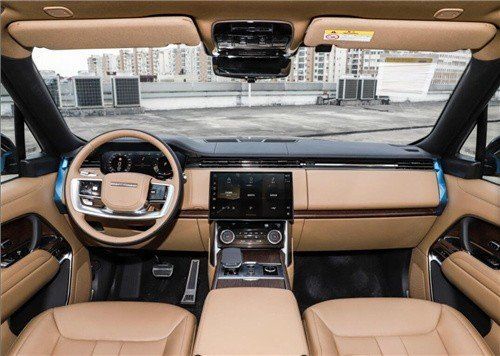 路虎揽胜 (配置|询价)创世加长外观整体高大威猛,车身侧面线条简洁有力,新增L型LED日间行车灯,同时采用了新的铅等涉及和更大的雾灯底座,侧面贯穿全车腰线,倍显澎湃动力而不失沉稳气质。路虎揽胜创世加长致力于让真皮的奢侈与山野的泥泞融洽相处,它比运动版更严肃,揽胜行政版霸气又不张扬,厚重又不失优雅。