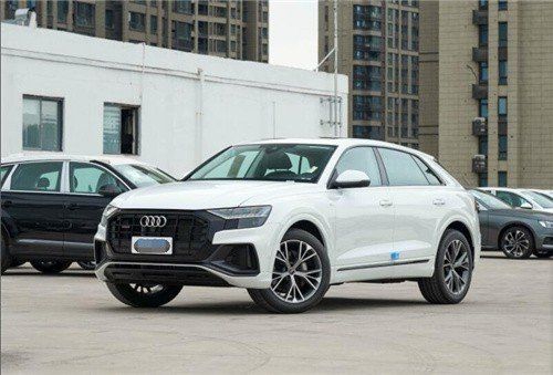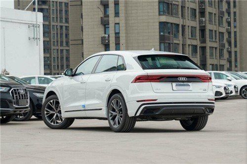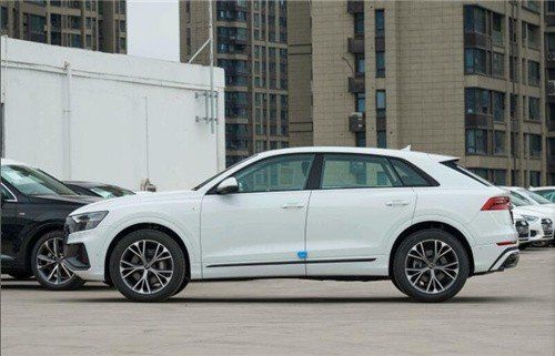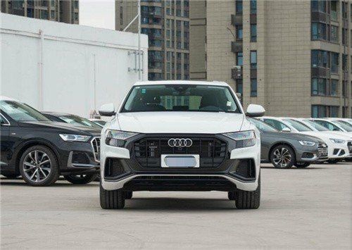 23款平行进口奥迪Q8 (配置|询价)扁平但犀利的LED头灯配合棱角分明的前杠两侧进气槽孔,在营造动感外观的同时拉低了视觉重心。虽然延续概念车上的无门把手设计的愿望最终落空,但直接在前后灯组后方留出凸台用以承接双腰线的设计。