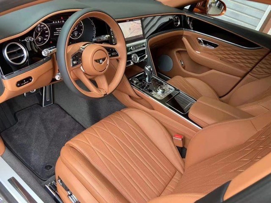22款宾利飞驰内饰部分采用最新的飞翼式家族设计风格。新车内饰采用双色皮革包裹,搭配做工精细的金属饰条和双色实木饰板,进一步体现了它的奢华感。宾利针对真皮门板饰面首次引入的立体菱形真皮内饰设计,在没有缝线的基础上通过皮革起伏呈现出层次感。各种旋钮处及出风口装饰等处采用了类钻石贴片饰面,根据宾利官方的描述,这样的贴片全车最多可以达到5331个。宾利独创的的三面翻转式的中控触摸屏也出现在了全新一代飞驰上,其中中控屏尺寸为12.3英寸,优化后的车机系统UI包含更多的功能。