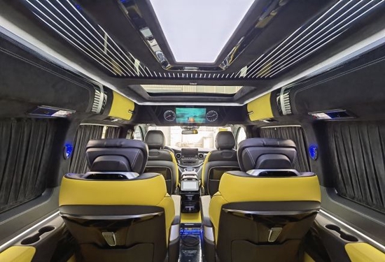 专门定制航空头等舱按摩座椅可以全身气筒按摩,舒适感受,更能多项调节,通风加热。疲乏时也可展开腿托,舒适休息。奔驰V260L改装商务车座椅设计得宽大舒适。奔驰V260L改装高顶隔断7座商务车后排排两个独立,并带脚托、座椅记忆,电动升降头枕、座椅通风加热功能,享受堪称“头等舱”级别,设计体贴入微。更多的个人车主或是改装厂家,愿意将奔驰V260L打造成一款更加符合高端定位的豪华商务用车。