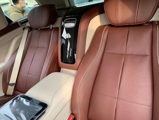 23款防弹奔驰迈巴赫GLS600防弹奔驰GLS600迈巴赫新车提供四座和五座两种布局,其中四座车型第二排独立座椅相比普通版GLS更加靠后,并且带有巨大的腿拖,其后排座椅最大倾斜角度大43。度后排腿部空间最大达1.34米。中央由冰箱、控制台储物空间和手机无线充电台