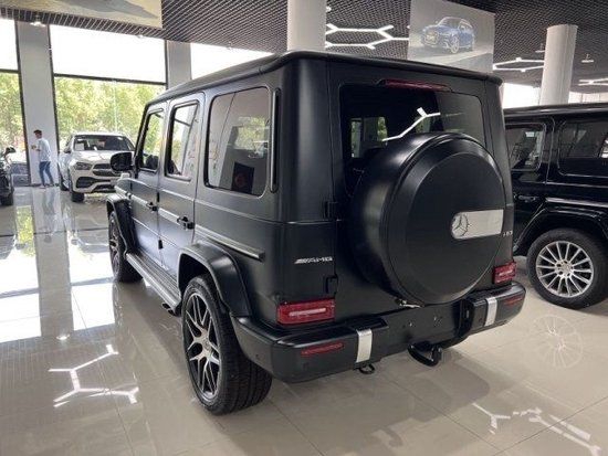 2022款奔驰G63保持了奔驰G级经典的方正外观,并在普通G级的基础上加入了大量运动套件。具体来看,新车提供了直瀑式格栅,车侧采用了大尺寸多幅轮圈,并针对内部卡钳进行了喷红处理,运动味十足。此外,新车还配备了运动排气。