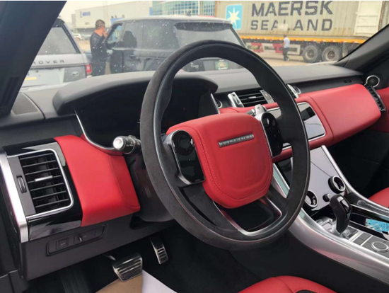 加版路虎揽运SHT(高功率版P400)银红 93万可谈 配置:属金漆拖,车,包22寸高亮轮毂5066前,后椅座加热黑,色钢琴漆,黑内顶,座插,保护包