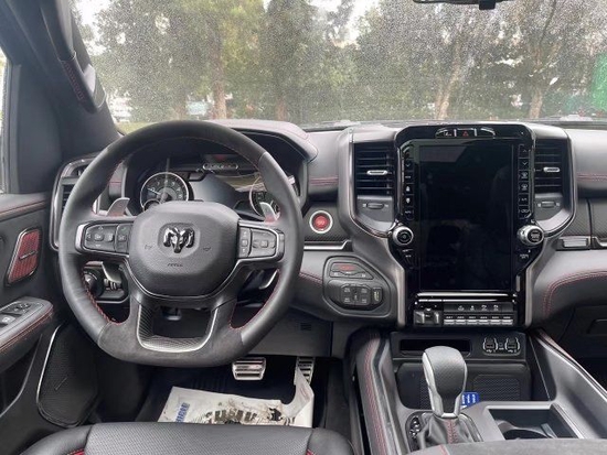 在内饰部分进一步强化了其高性能版本的形象,中控台和座椅随处可见的TRX标识便是最好的例证。同时,作为道奇家族的旗舰车型,新车还配备了12英寸竖置中控屏幕,除了支持蓝牙、导航和车载Wi-Fi等常见功能,还支持Apple CarPlay和Android Auto手机映射。