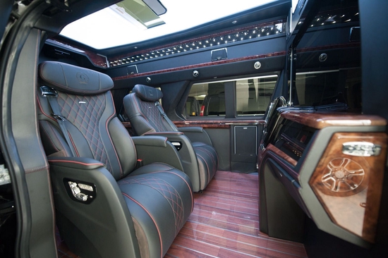GMC商务车首领级商务车秉承了美国奢华房车的一贯风格,外形高大威猛,辅以大型双对拉式中门及高顶规划,并且选用了很多镀铬饰件,能够说只需置身于该车中,到处都能感受到其所显示的君临天下的霸气。