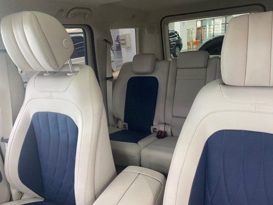 座椅方面,它选用的是米白色的菱形格多轮廓真皮座椅,前座椅快速加热、通风,后排的话空间还可以,你也不能拿越野王者和大尺寸的SUV相提并论,总体来说,舒适性表现还是很不错的。