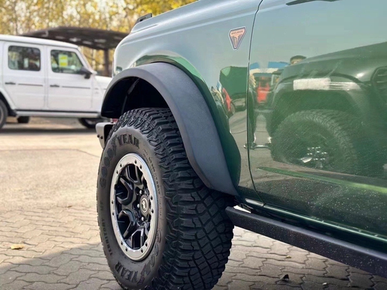 22款福特烈马Bronco采用了趋于平直的车顶线条,从而获得更好的车内头部空间,同时,贯穿式腰线的使用,也让新车看上去更具层次感,另外,前后侧翼子板微微突出车身,搭配车门下方内凹式的设计,再加上大尺寸轮毂,看上去四平八稳。车尾部分,新车配备了外挂式后备胎,两侧尾灯采用竖状的设计,点亮后效果十分出色,黑色外凸的后保险杠设计很有越野范。