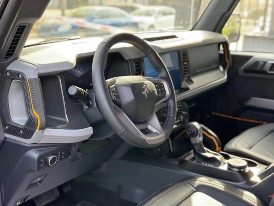2022款福特烈马Bronco 既有两门版还有四门版,我们看到的这辆四门版福特烈马Bronco是北美款,2.7T原装进口,V6双涡轮增压引擎,匹配10AT变速箱,非常的用心,重型悬挂,智能四驱,底盘非常扎实,很多牧马人 (配置|询价)(配置|询价)车友试驾它后都说物有所值,确实值70多万元,不过它到底能不能卖过牧马人还不好说。