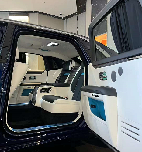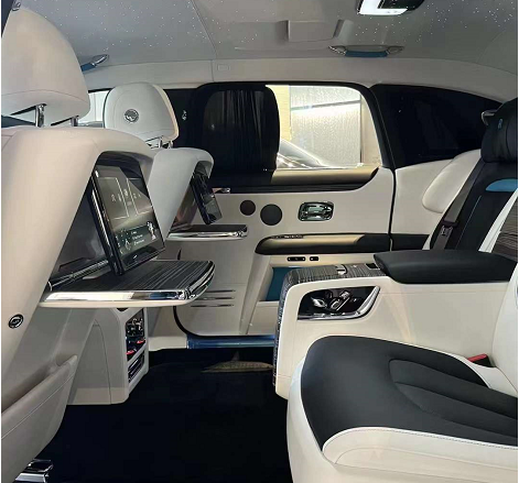 劳斯莱斯--古斯特纯手工打造的内饰,处处都体现着精致感,由2000名工人,经过60双手,花费至少20天打造。三辐方向盘尺寸适中,握起来很舒服。控台配有一块石英表,看起来很复古,与劳斯莱斯车型的高贵相互映衬。中控台配备了10.25英寸显示屏,集成了导航、多媒体、蓝牙电话、行驶信息等。通过类似iDrive的旋钮区域控制,也带有手写功能。