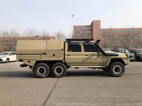 全新22款丰田皮卡LC79出厂时候的越野能力已经是非常强大了,只需稍作改装即可变成越野穿越的利器,而改为6x6的丰田LC79那就是无敌一般的存在了。