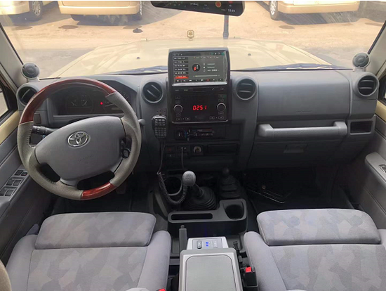 丰田LC79的V8 D4D柴油版内饰中控部分有显示屏,方向盘带桃木,座椅是丝绒材质。整个内饰跟LC76是一样的。