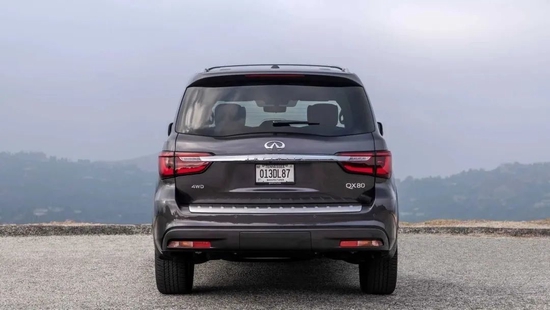 QX80侧面的线条凸显高大,威猛,非常霸气,车身还提供大量镀铬装饰件,比较时尚,显眼的大尺寸轮毂很运动,尾部的造型依然比较高大,饱满,尾灯跟大灯产生呼应,排气为隐藏式设计。