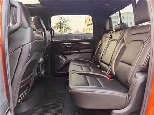 道奇公羊霸王龙做工则完全摆脱了美式的粗糙感,边缘、接缝都处理的很精细,真皮座椅各自独立,配有加热、按摩等舒适功能,每个座椅独立配一个操控手柄,各项功能由乘坐者自己控制。道奇公羊皮卡车型全部座椅均采用真皮包裹,前排还配备了十分实用的运动座椅。