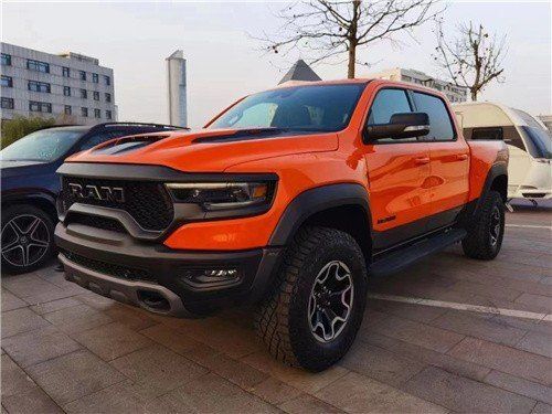 22款道奇霸王龙6.2TRX点火限量版首发限量版,橙/黑 129万现车手续齐 配置:TRX点火限量版包,2级包,高级安全包(雷测),碳纤维内饰包,全景天窗,TRX车身贴纸,双色车身,货箱包,伸缩踏板,拖车包,TRX越野踏板,牵引反向转向控制。