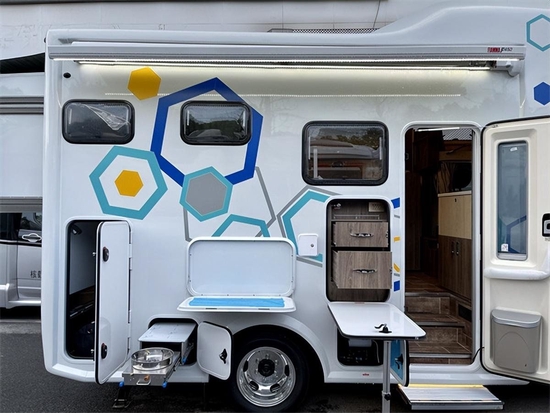 全车的长宽高为5990*2490*3180mm,同时还配置了较为丰富的生活配置,包括车身右侧的电动遮阳棚、外置翻板以及一个外置的小餐桌,里面还带有可双向抽拉的储物抽屉,平时天气好的时候也可以打开遮阳棚选择在下方做饭聚餐,享受休闲的旅居生活。车尾的贯通式储物行李舱能够带下更多的旅途物品,能够从车内直接拿取,避免上下车取物的麻烦。Vx:YH_ZF-2020,Tel:1 3 3 2 1 9 5 6 6 7 9