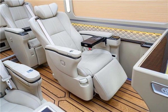 丰田丰田考斯特改装商务车为整车从新配置了防震隔音,底部选择地板或者地毯提升档次的同时也减少了车子在行进中的噪音。华通丰业丰田考斯特地毯可以选择比利时进口巴斯夫尼龙环保地毯,亦或是飞机上使用的航空地毯。